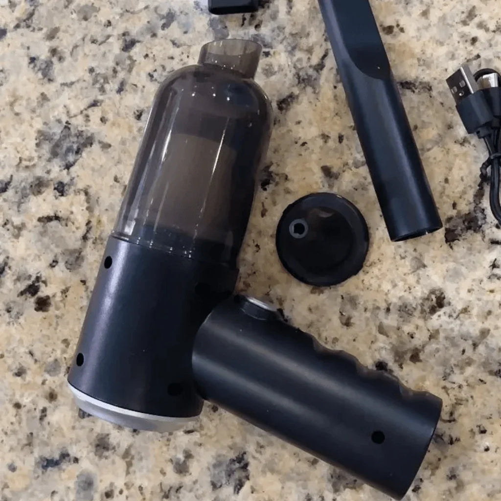 1x Aspirador de pó portátil recarregável USB 1x Cabo de carregamento 1x Tubo extensor para áreas de difícil acesso 1x Escovinha para limpar e aspirar ao mesmo tempo